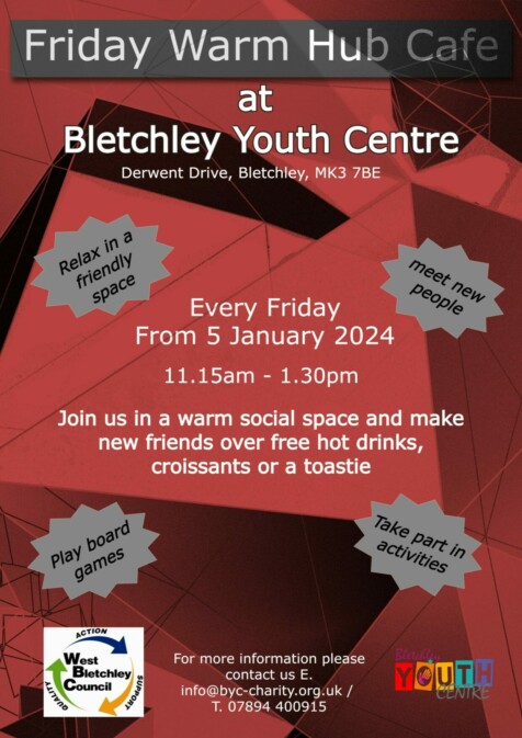 Bletchley Youth Centre will be opening a Warm Hub Cafe for hot drinks, pastries and…